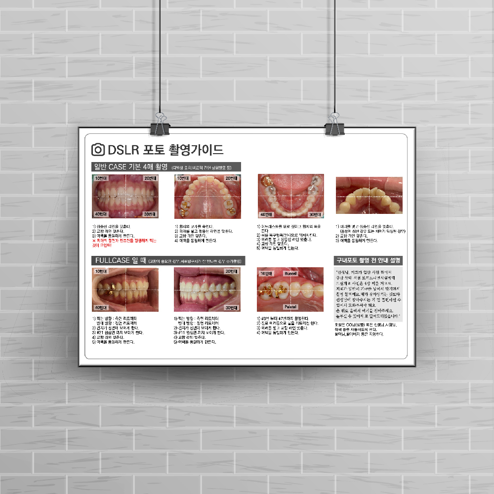 치과 잘 보이는 곳에 게시하면 직원들이 사진을 찍을 때 많은 도움이 됩니다.