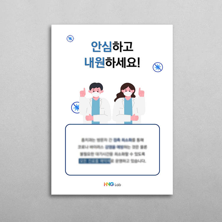 데스크앞, 엘리베이터, 대기실, 진료실에 배치하면 좋습니다.