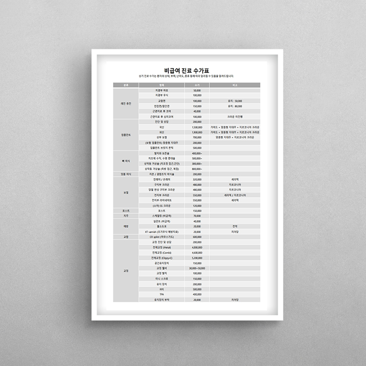 비급여 수가표입니다.