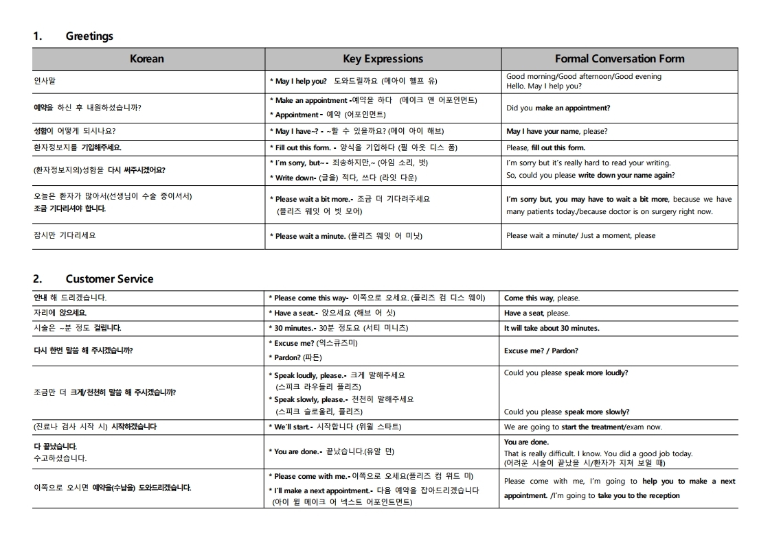 1) 주로 사용하는 표현 Useful Phrases